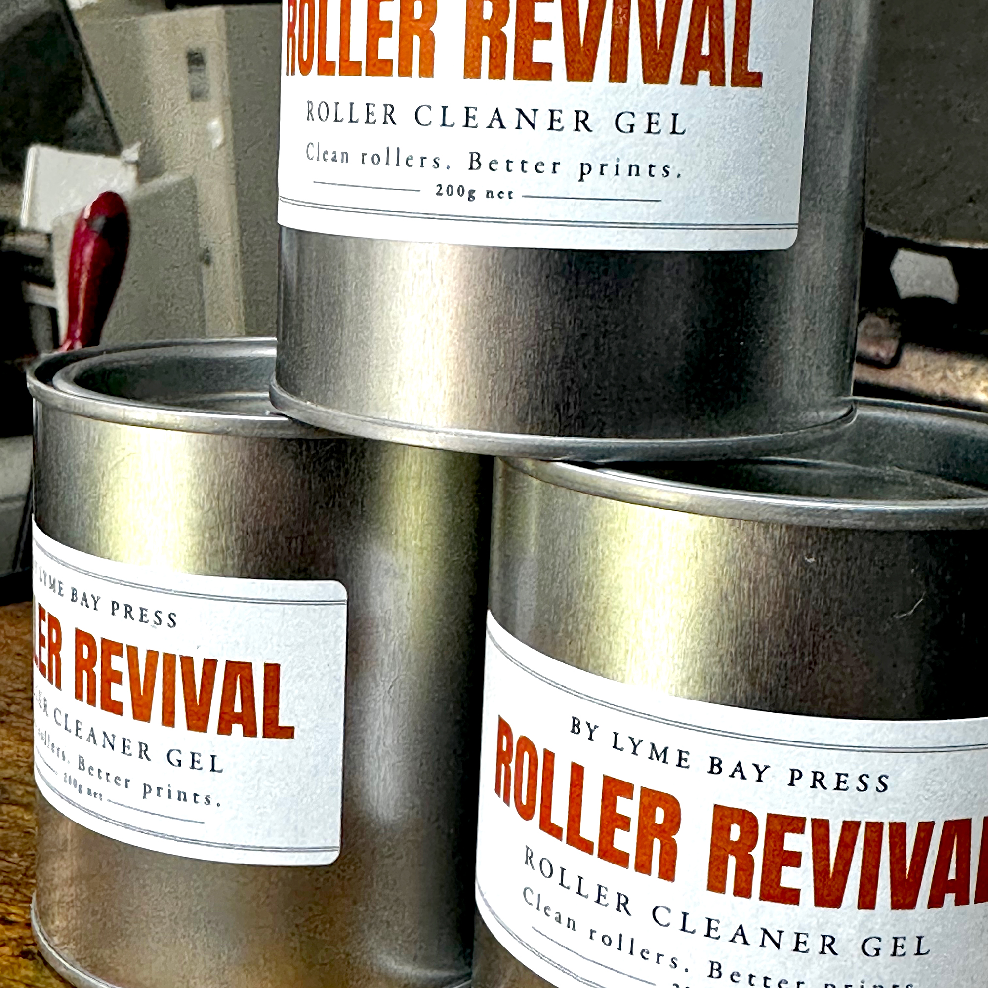 Tags: ink in tins, letterpress roller, letterpress roller cleaner, roller cleaner